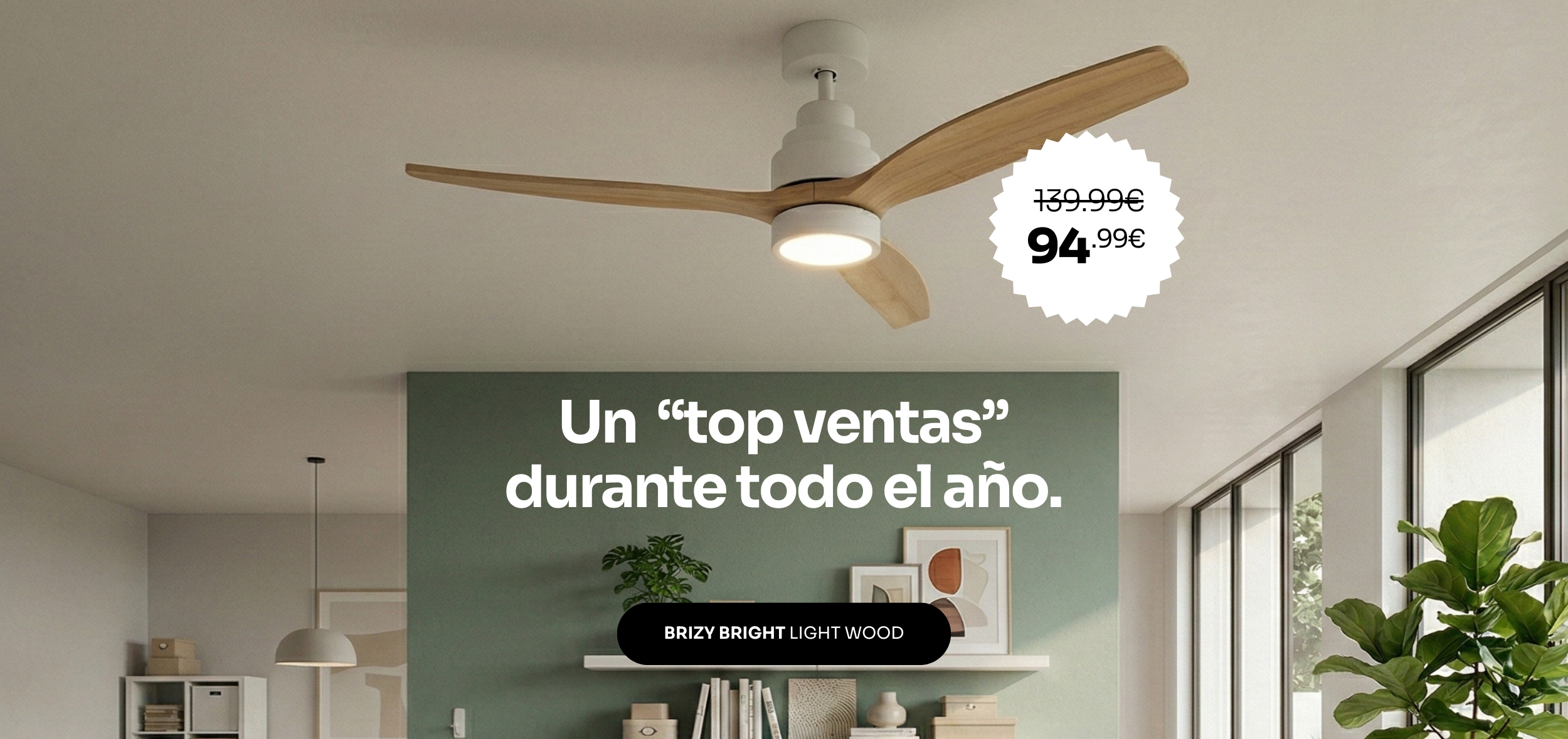 Ventilador de techoEn stockPrecio habitual 94,99 €Precio habitualPrecio unitario / por139,99 €- 32%Precio de oferta 94.99 €Oferta -