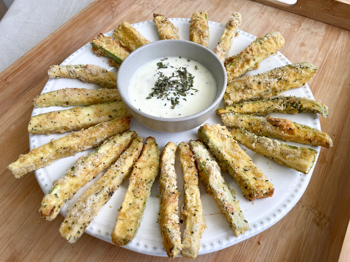 - 350 gr de calabacín lavado y sin pelar cortado en bastones.