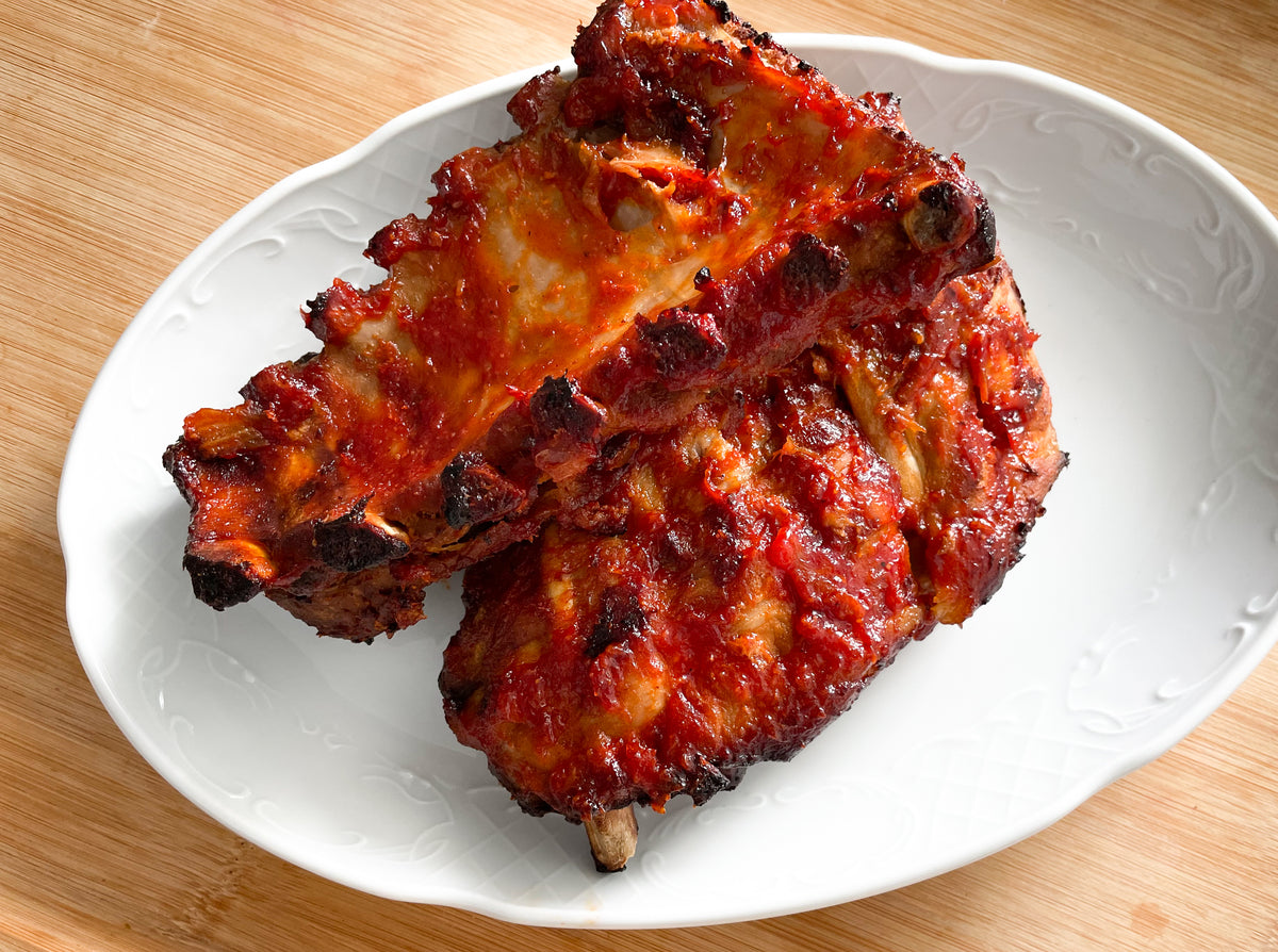 - Llevar a la freidora de aire 20 minutos a 180ºC. Dar la vuelta al costillar y cocinar otros 15 minutos más a 180ºC.
