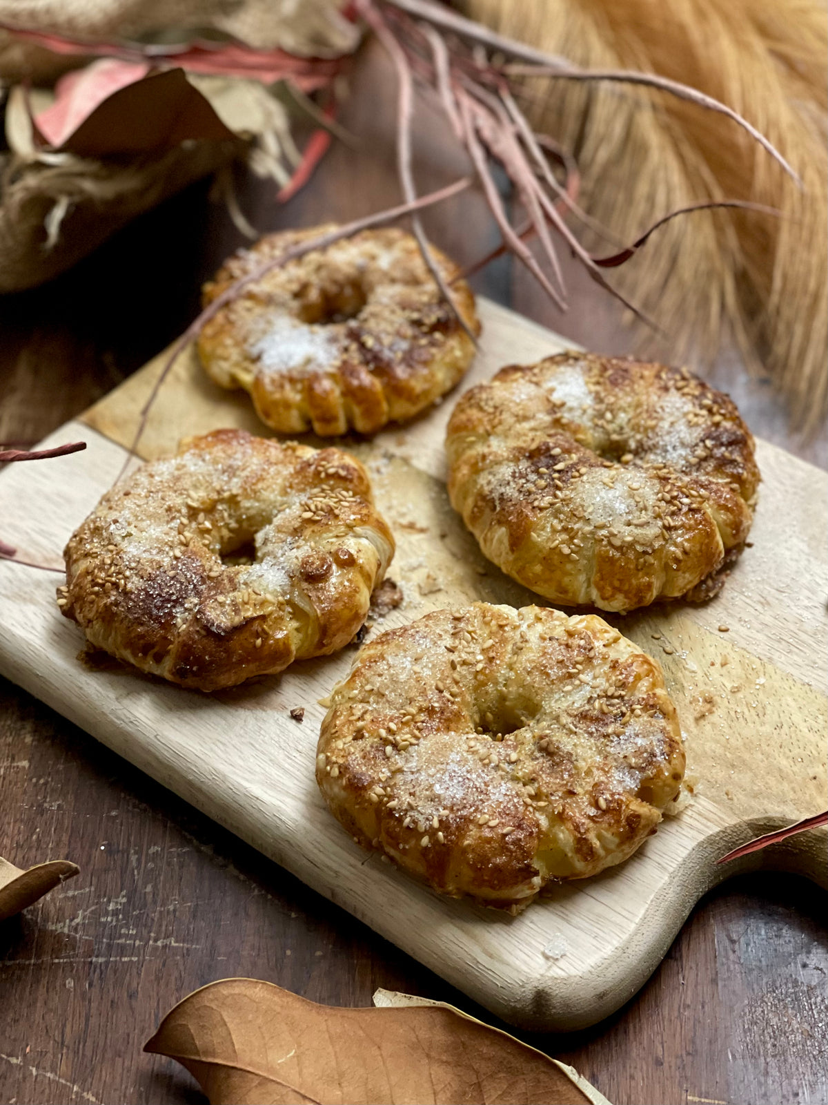 - Espolvoréalos con azúcar, canela y sésamo tostado.