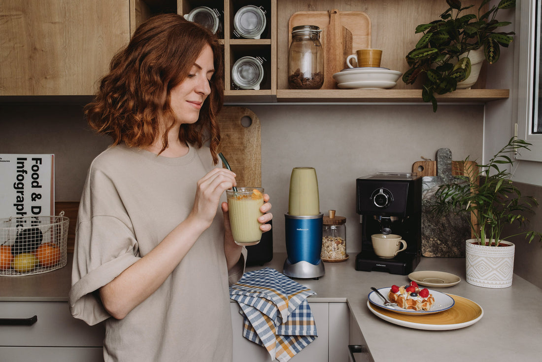 Por un lado, disponemos de nuestra batidora Smooth, disponible en tres colores diferentes. Esta opción es la más práctica ya que se trata de una batidora compacta, con 1000W de potencia y muy eficiente ya que, además de los deliciosos batidos que consigue, es muy fácil de manejar, lavar y guardar.