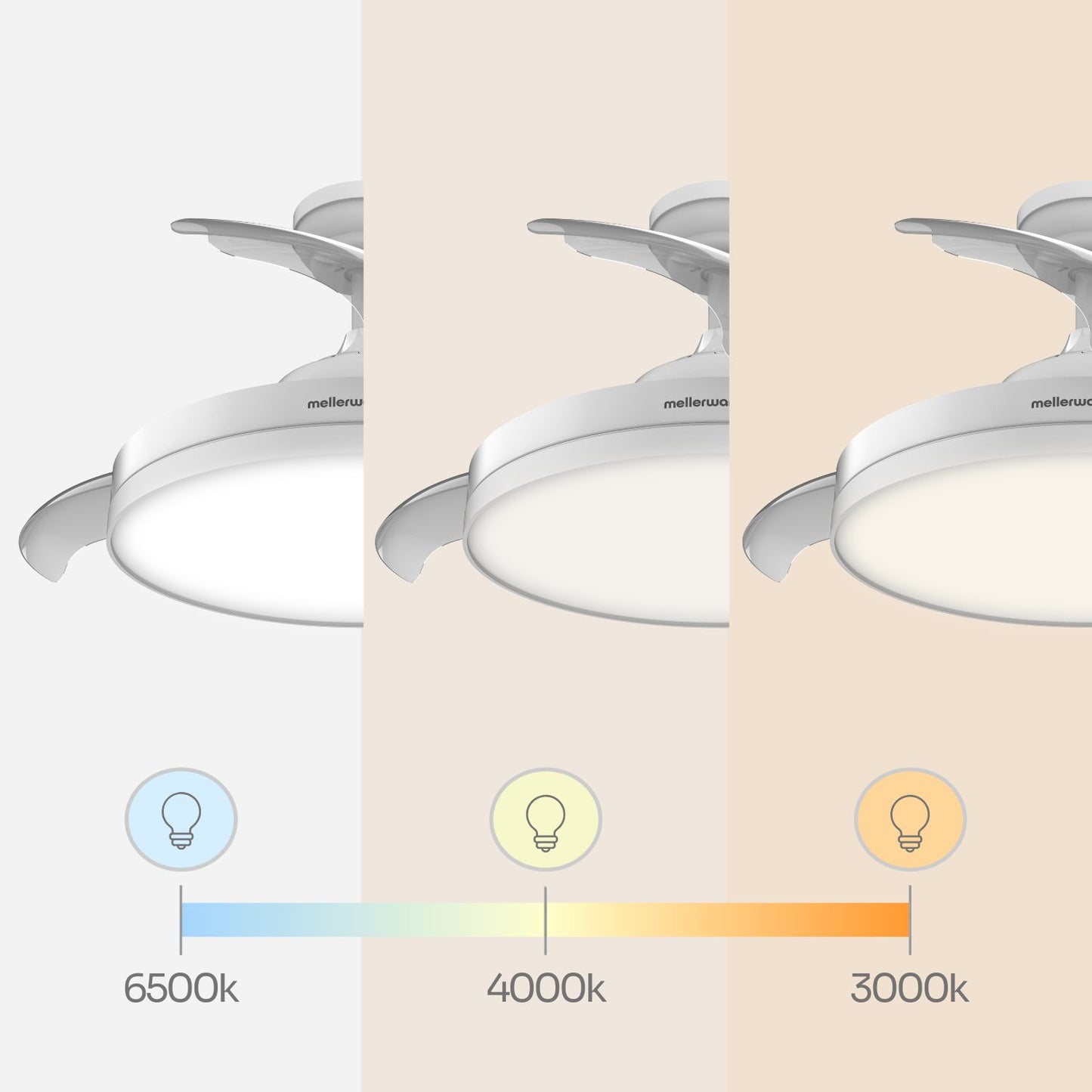 Dispose de pales transparentes et rétractables qui peuvent être dissimulées à tout moment, laissant uniquement une élégante lampe.