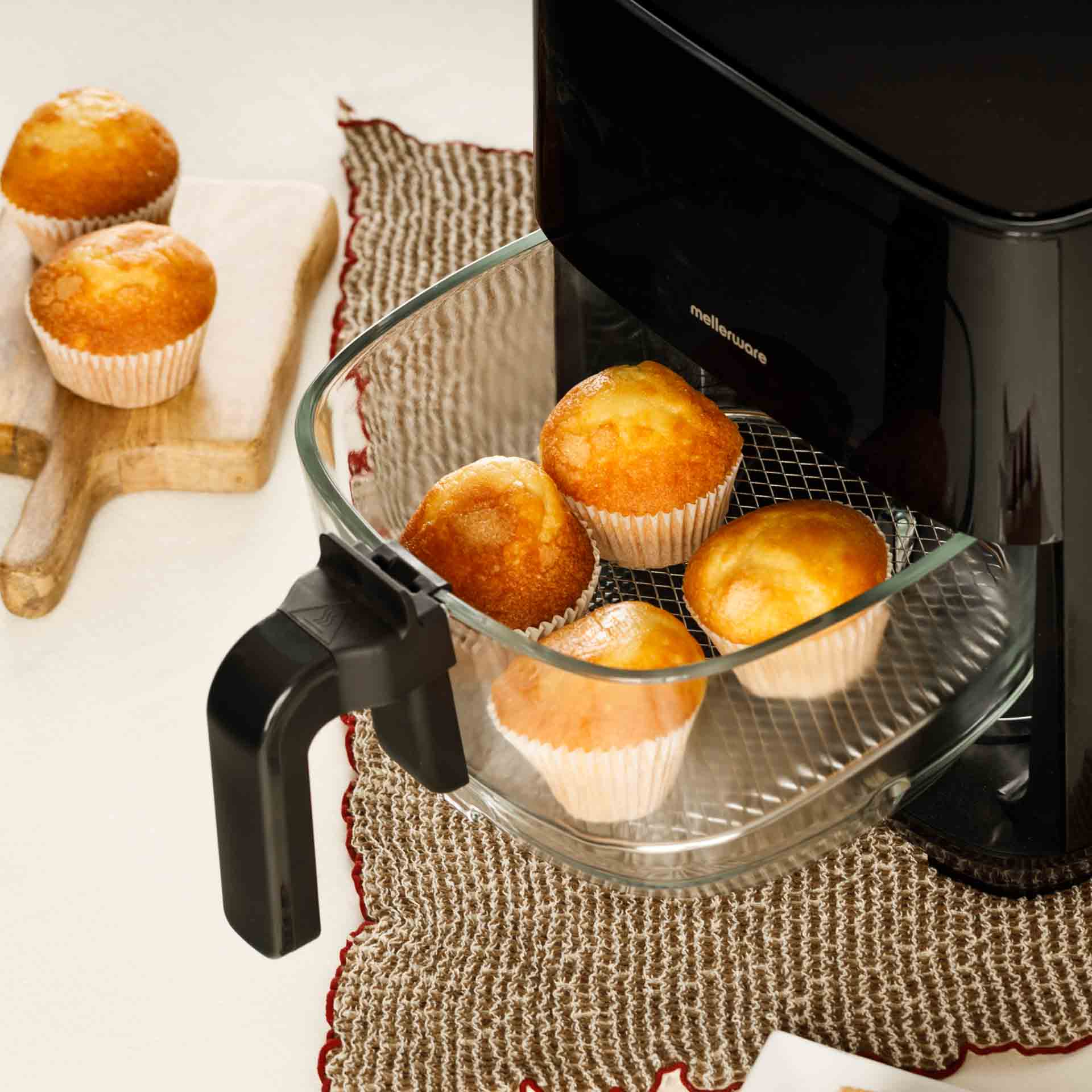 - Panier en verre : une alternative plus saine et plus durable aux modèles traditionnels avec téflon. Son matériau sans revêtements chimiques évite l’usure et les particules indésirables, tandis que sa transparence permet de surveiller la cuisson à tout moment sans ouvrir la friteuse. Résistant aux hautes températures, facile à nettoyer et compatible lave-vaisselle, il vous garantit confort, sécurité et une expérience culinaire plus naturelle et pratique au quotidien.