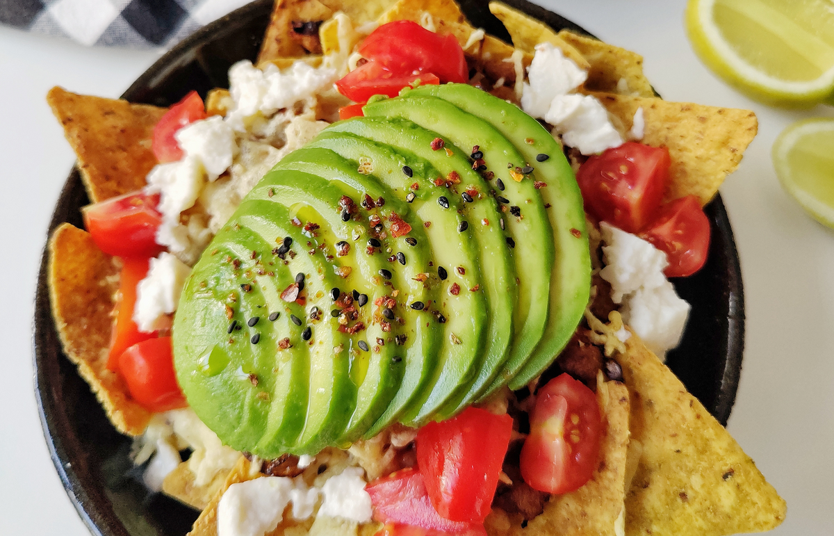 - En un bol o plato hondo apto para freidora de aire, poner los nachos y, por encima, repartir la salsa previamente preparada.