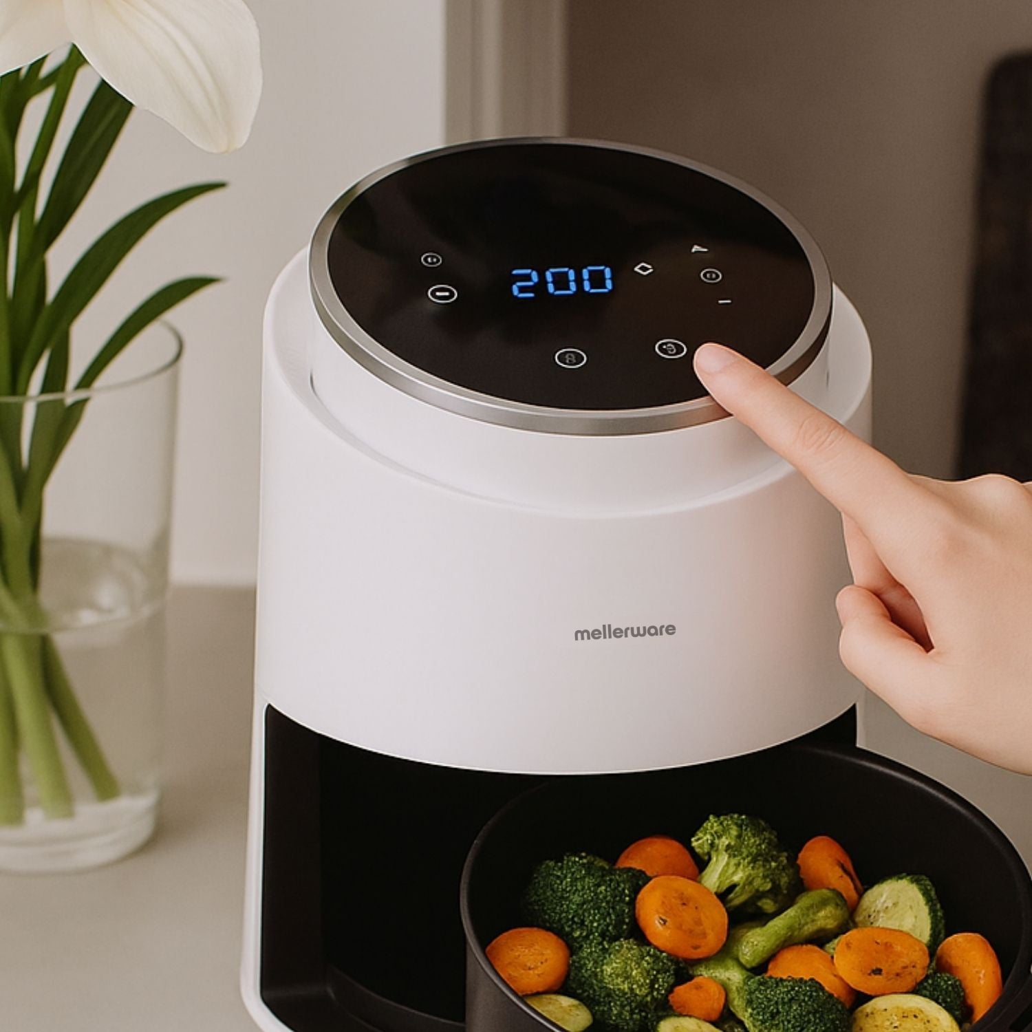 - Temperatura ajustável de 80 a 200 °C: controla facilmente o ponto de cozedura para resultados crocantes por fora e macios por dentro.
